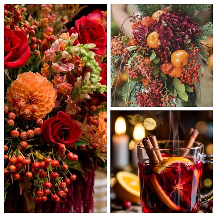 Entrez dans un univers chaleureux et gourmand, inspiré des senteurs et des couleurs du vin chaud hivernal. Les fleurs se déclineront dans une palette épicée et chaleureuse : rouges profonds, orangés lumineux, bruns et touches dorées. Pour sublimer cette ambiance, des bâtons de cannelle et des rondelles d’orange séchée viendront ponctuer la composition, éveillant les sens autant que le regard.